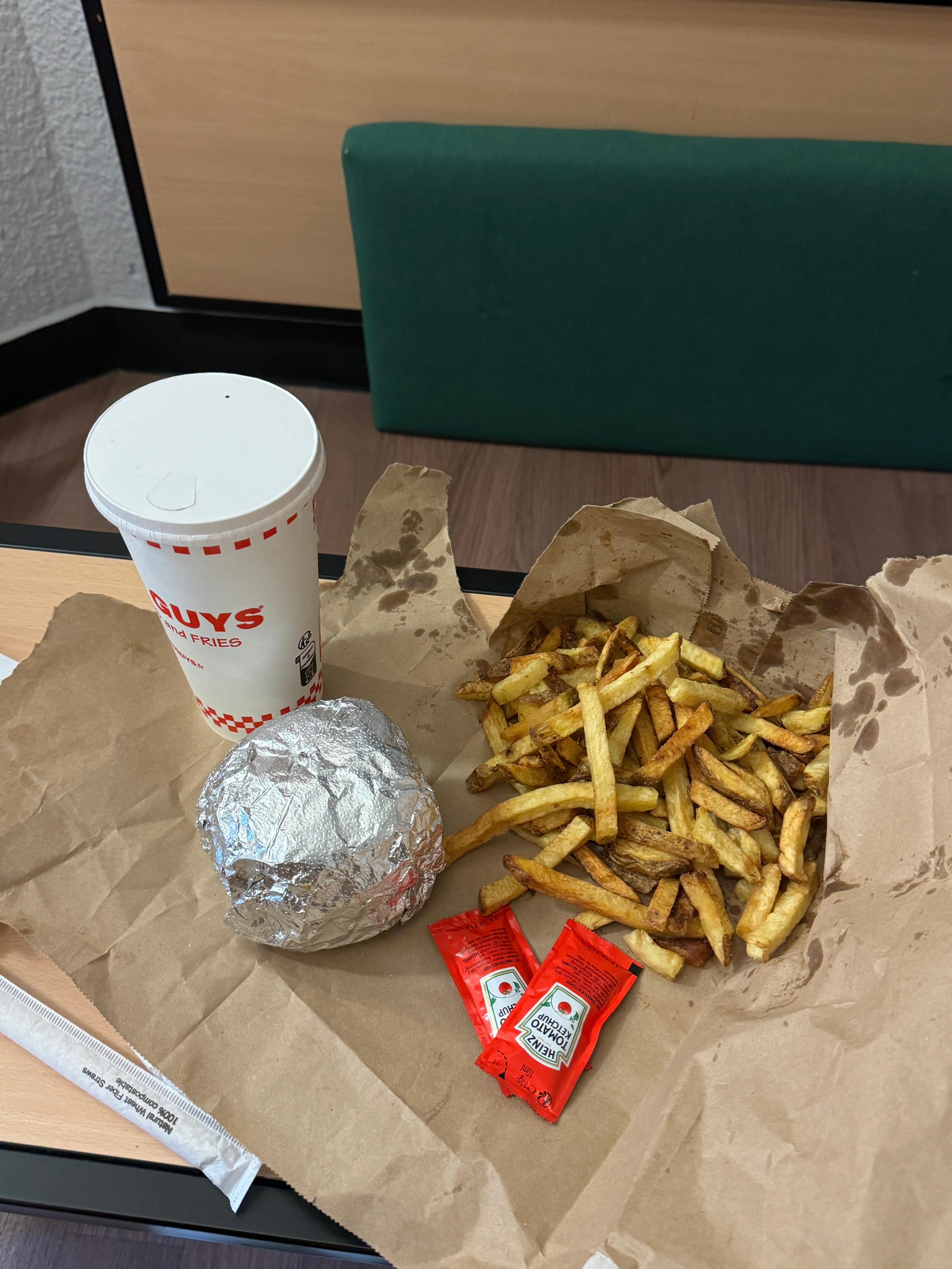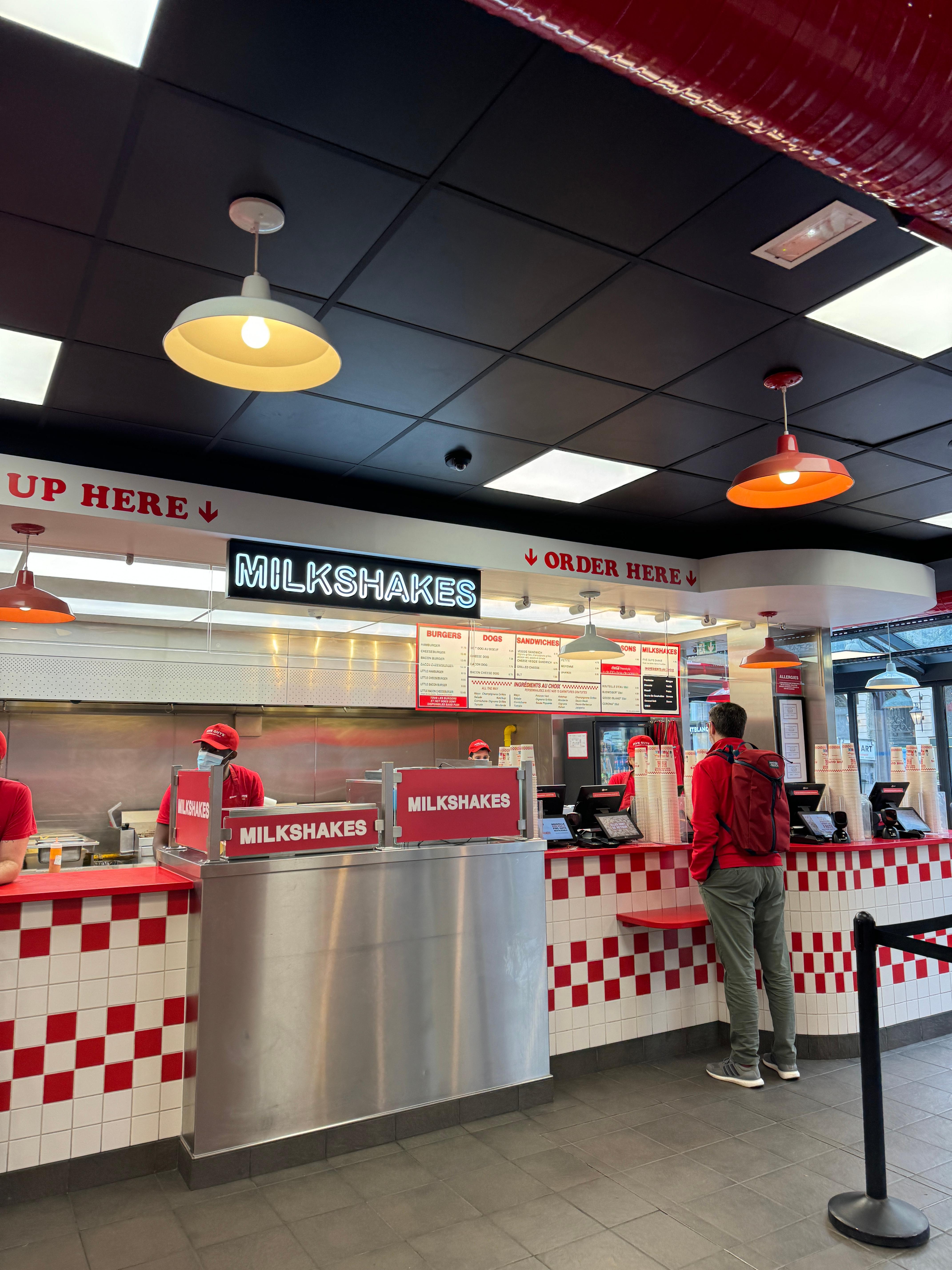 영국이나 프랑스는 5분 거리마다 파이브 가이즈가 보인다. 배고픔에 저거라도 먹어야겠어서 들어옴